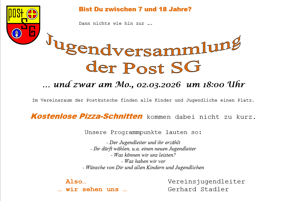 am Donnerstag, den 26. März 2026 um 19:30 Uhr im Vereinsheim der Post SG Schenkenseestraße 69/2, 74523 Schwäbisch Hall Tagesordnung: Anträge müssen bis zum 12. März […]